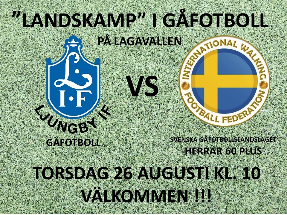 Nu på torsdag, 26/8 med matchstart kl. 10.00 gästas vårt gåfotbollslag av det Svenska Gåfotbollslandslaget så passa på att ta dig till Lagavallen för att bevittna denna spännande match. Välkommen! Ljungby IF 22 aug 2021