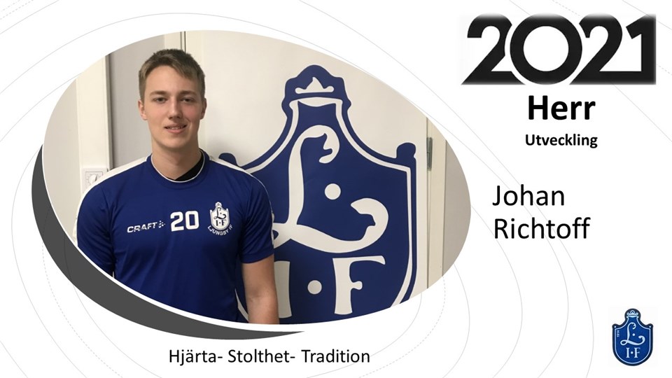 Johan Richtoff, född 2004, är en stor och stark mittback. Med sitt lugn och okomplicerade spel skapar Johan trygghet bland medspelare. Har visat en bra utveckling under 2020, och kan med ytterligare träning bli en mycket bra mittback. Har redan fysik för spel på seniornivå. //Sportgruppen