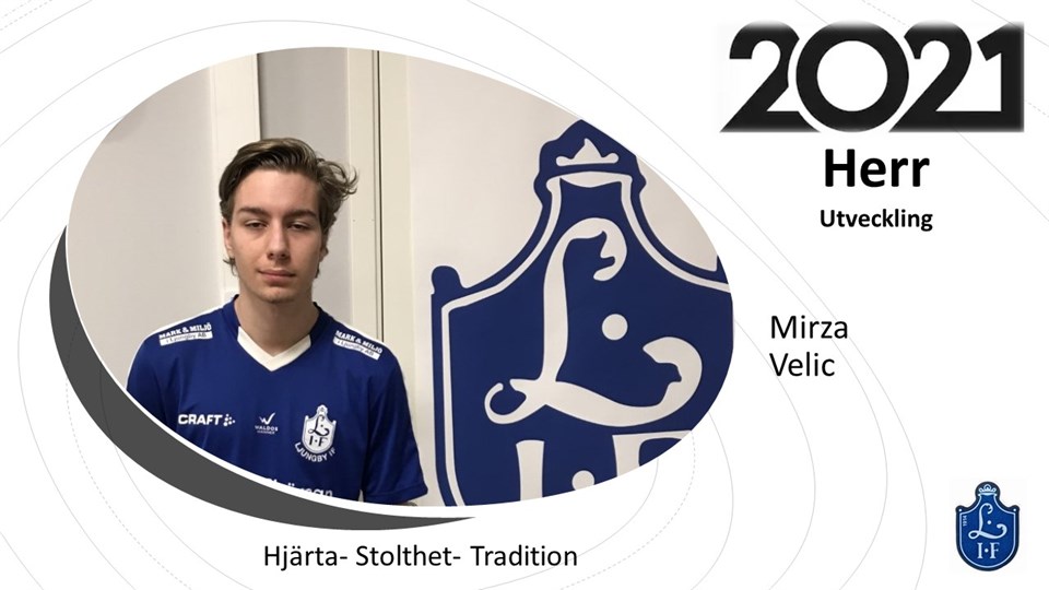 Mirza Velic Född 2003, en mittfältare/ anfallare med bra teknik, bra passningsspel och tuffhet. Mirza har under 2020 gjort många bra insatser i Junior- och B-lag, och det finns det alla möjligheter att ta nästa steg under 2021. // Sportgruppen