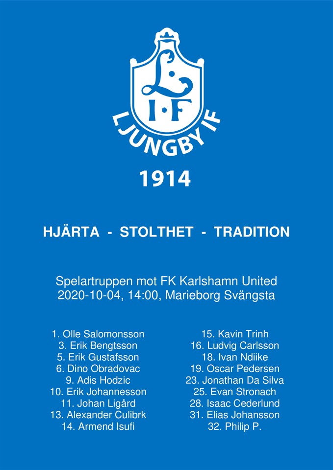 Ljungbys tränare Samir Hodzic summerar bortaförlusten mot FK Karlshamn United med 0-2. ”En förlust i den sista matchen var givetvis ett tråkigt avslut på säsongen 2020. Jag tycker ändå att vi var det bättre laget oavsett om vi hade många spelare borta i epilogen. Vi spelade bra fotboll, tryckte på framåt och de kontrade. Deras målvakt gjorde en avgörande räddning i första halvlek, ett mål där och matchbilden hade blivit annorlunda. Men när man sammanfattar hela säsongen 2020, så måste jag vara stolt som tränare. Under mina två tränarår tog vi LIF dit där ska vara och förhoppningsvis når de ännu högre upp framöver. Tack för två jättefina år. Jag önskar LIF det bästa i framtiden och ett speciellt tack skickar jag samtidigt till mina fantastiska spelare i föreningen.” Herr 5 okt 2020