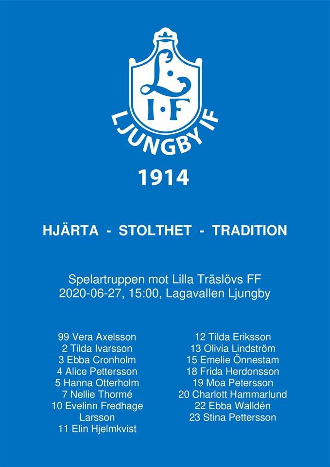 Herrarna åker till Ronneby för höstens första match. Ronneby som inte har spelat någon match i årets serie, är en nykomling som förra årets spelade i Divison 4 Blekinge. Ljungby har tränat bra under våren, och har efter några veckors sommmaruppehåll kört många träningspass under de senaste två veckorna. Bra träninsgnärvaro och bra stämning i truppen inför en tuff höstsäsong. Inför Hösten har truppen förstärkts med Morgan Hellman,målvakt från IFK Värnamo, men av startspelarna från våren är Erik Gustafsson tyvärr borta från helgens match Truppen som åker till Ronneby är: Sebastian Jönsson Morgan Hellman Erik Bengtsson Jonathan Da Silva Enes Smajlovic Dino Obradovac Oscar Pedersen Josef Karlsson Ivan Ndike Johan Ligård Mubiri Yahaya Adis Hodzic Ludvig Carlsson Isaac Cederlund Alexander Culibrk Armend Isufi Erik Johannesson Kavin Trinh Matchstart 14.00 på Brunnsvallen i Ronneby