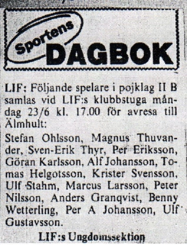 På 1970-talet kunde man se och följa de flesta laguttagningar i den lokala pressen. Det gällde såväl seniorlag som ungdomslag och tidningen blev därför en viktig del av en fotbollsspelares liv. Många lösnummer såldes säkerligen extra på grund av detta, och tidningarna cirkulerade runt på arbetsplatserna, från hand till hand. Ljungby IF 6 dec 2019 0kommentarer