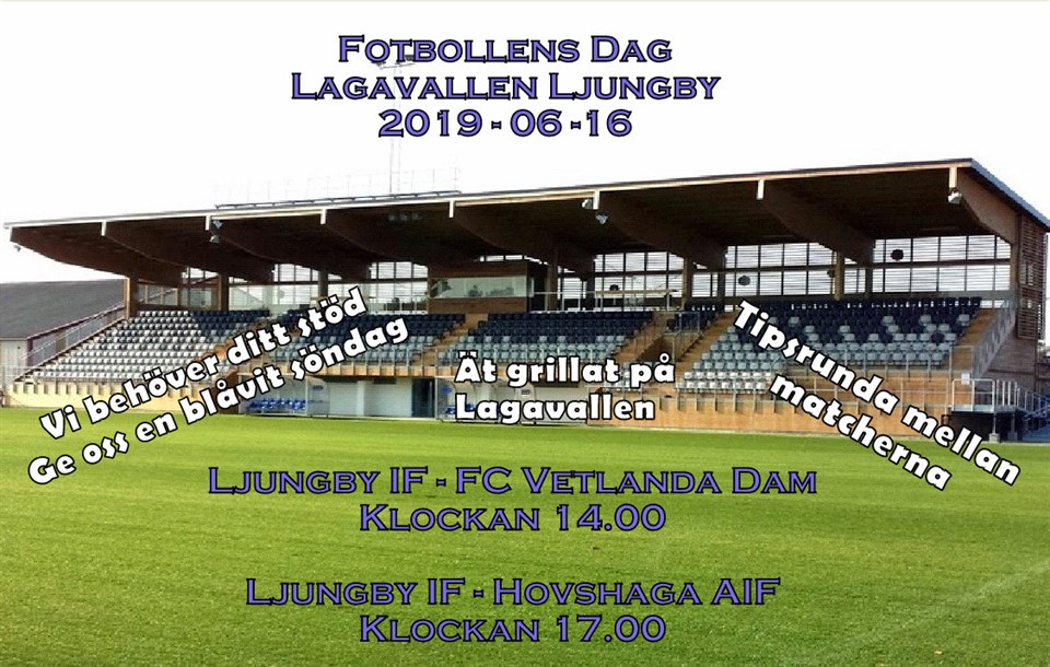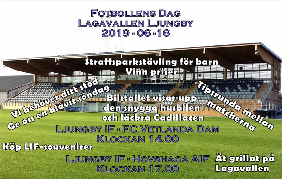 Missa inte Fotbollens dag på Lagavallen Ljungby på söndag. Klicka på pilarna till höger på bilden för att se hela annonsen. Hjärtligt välkommen.