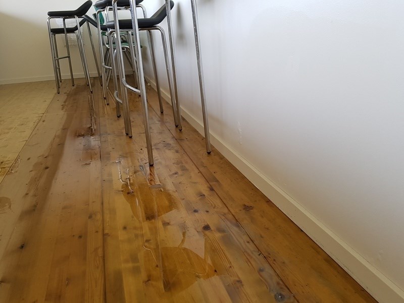 Trots att vintern inte varit alltför svår så har vårt speakerbås på läktaren fått en vattenskada under vinterhalvåret. Smältvatten har runnit in på golvet och tagit sig upp i den södra väggen. Orsaken till detta är att snö lagt sig mot ytterväggen och sedan smält och runnit in i rummet vid blidväder. Orsaken till snön kan sedan hämtas från avsaknaden av glasväggar på läktarens södersida. Och orsaken till den avsaknaden beror på den tvist som uppstått vid glasens felaktiga montering vid läktarbygget...