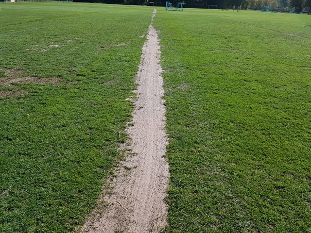 I sviterna av sommarens torka kan man nu se var dräneringen av "Näckrosen" gjordes för några år sedan. Den tunna grässvålen klarade inte torkan och vaktmästarna på Lagavallen Ljungby toppdressar som områdena som led mest av sommarens torka.