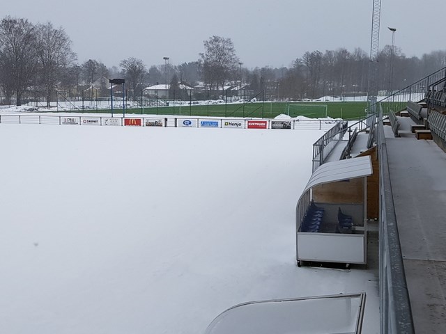 ... men ändå så långt borta. Med en månad kvar till seriepremiären ligger snön ännu vit på Lagavallen Ljungby. Kanske blir det ändå den gröna konstgräsplanen som skymat där borta som blir värd för säsongens första seriematch...