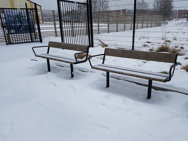Under fotbollssäsongen är våra vilobänkar på Lagavallen Ljungby mycket uppskattade och frekvent besökta. Nu, vintertid, är de desto mer övergivna och saknar sällskap. De tycks nästan som vi, tyst inom oss, ropa ut sin längtan till våren.