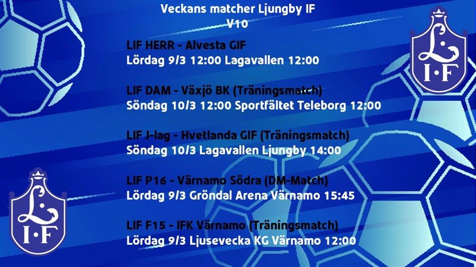 Här kommer en sammanställning över veckans matcher! Ljungby IF 6 mar 2024