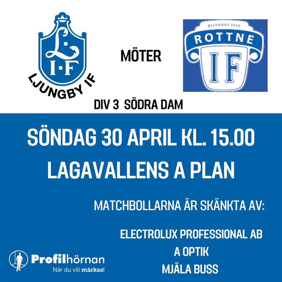 Nu på söndag, 30 april kl. 15.00 gästas damlaget av Rottne IF! Varmt välkommen till Lagavallen!