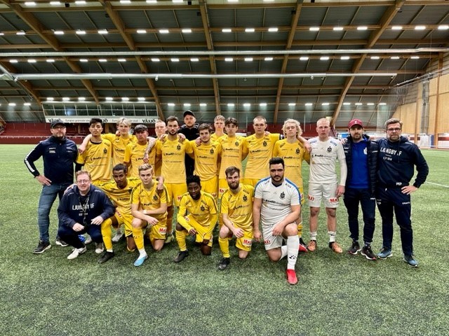 I lördags morse samlades ett taggat herrlag kl. 7:45 för avförd mot Tipshallen i Växjö för andra omgången i Årydscupen där två matcher väntade innan eventuellt slutspel. Vi ställdes mot Åryd i första matchen där vi vann komfortabelt i underkant med 2-0 med mål av Alexander Culibrk och Ivan N´Diike och där Elias Gunnarsson höll nollan. Ett par timmas paus med återhämtning och energipåfyllning innan nästa match mot Smålandsstenar. Vi visste att det var ett tufft motstånd och startade matchen i högt tempo med mycket bra passningsspel och hade några vassa chanser innan Melvin Andersson satte första målet efter ett snyggt anfall. Därefter hade Kaffi en bra aktion på kanten och kunde avsluta själv och rulla in 2-0. Efter det tappade vi lite av vårat spel och Smålandsstenar utjämnade till 2-1 efter lite missförstånd i backlinjen. Vi höll emot bra men missade helt markeringarna på en hörna med en minut kvar och kvitteringen var ett faktum. Trots det blev vi gruppetta och lottades mot Smålandsstenar även i semifinalen. I semifinalen gjorde vi vår klart bästa match och ägde det mesta av spelet men missade en del bra lägen innan Sven nickade in en hörna med ett grymt häng i luften och han har knappast landat ännu. I finalen ställdes vi mot Vederslöv/Dänningelanda som vi förlorade mot i först gruppspelsmatchen förra helgen så revanschlusten var stor. Trots att vi inte alls kom upp i samma nivå som i semin så var det vi som tryckte på och hade några bra chanser. V/D hade inte ett enda skott på mål förrän precis i slutet av matchen med en hård nick nere vid stolpen som Elis räddade snyggt och matchen blåstes av. Tyvärr så var olyckan framme och Elias skadade lillfingret som vi först befarade var brutet. Straffläggningen började direkt och Nshan hann inte ens värma upp innan han fick ställa sig mellan stolparna. En väl placerad straff från deras spelare som inte var mycket att gör något åt och V/D var i ledning. Det var sudden death straffar så Titus som skulle slå vår straff hade lite press på sig och målvakten gick åt rätt håll och räddade och därmed blev det ett silver för oss. Men sammanfattningsvis gjorde vi en mycket bra turnering där 28 lag deltog vi och har visat att vi kommer bli att räkna med när serien drar igång. Richard och Morgan coachade mycket bra med spelsystemet 3-5-2 som i dom bästa stunderna såg väldigt lovande ut och det kommer bli en spännande säsong där vi blir svåra att slå. Efter läkarundersökning och röntgen konstaterades glädjande att Elias finger ”bara” var ur led, så han är tillbaka i full träning om några veckor.