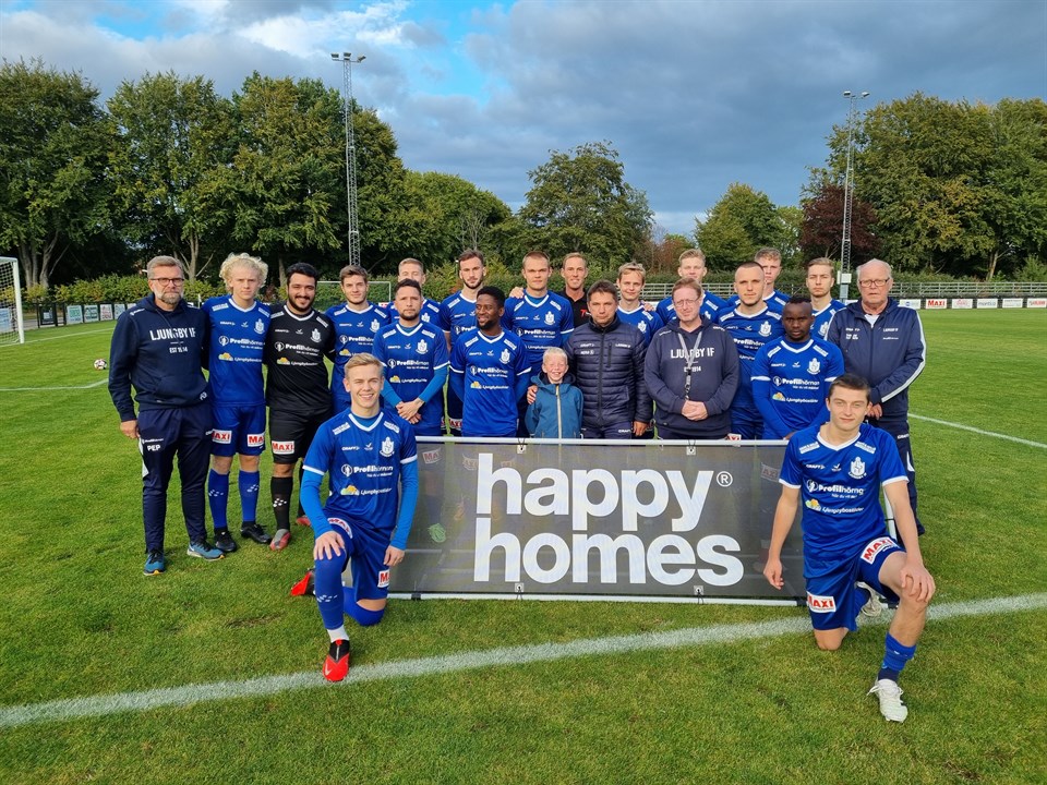 Gårdagens hemmamatch mot IF Rejban slutade med en skön 3-1 seger där Lucas Jansson tidigt slog in 1-0 och där Rejban kvitterade till 1-1 strax innan halvtidspausen. Bara några minuter in på andra halvleken gör Sven Holst 2-1 på en hörna och Armend Isufi fastställer sedan slutresultatet till 3-1 på ett fint skott utifrån. Vi vill också rikta ett STORT TACK till vår matchsponsor Happy Homes vars ägare John Törnqvist här syns på bilden tillsammans med gårdagens trupp. Ljungby IF 15 sep 2022